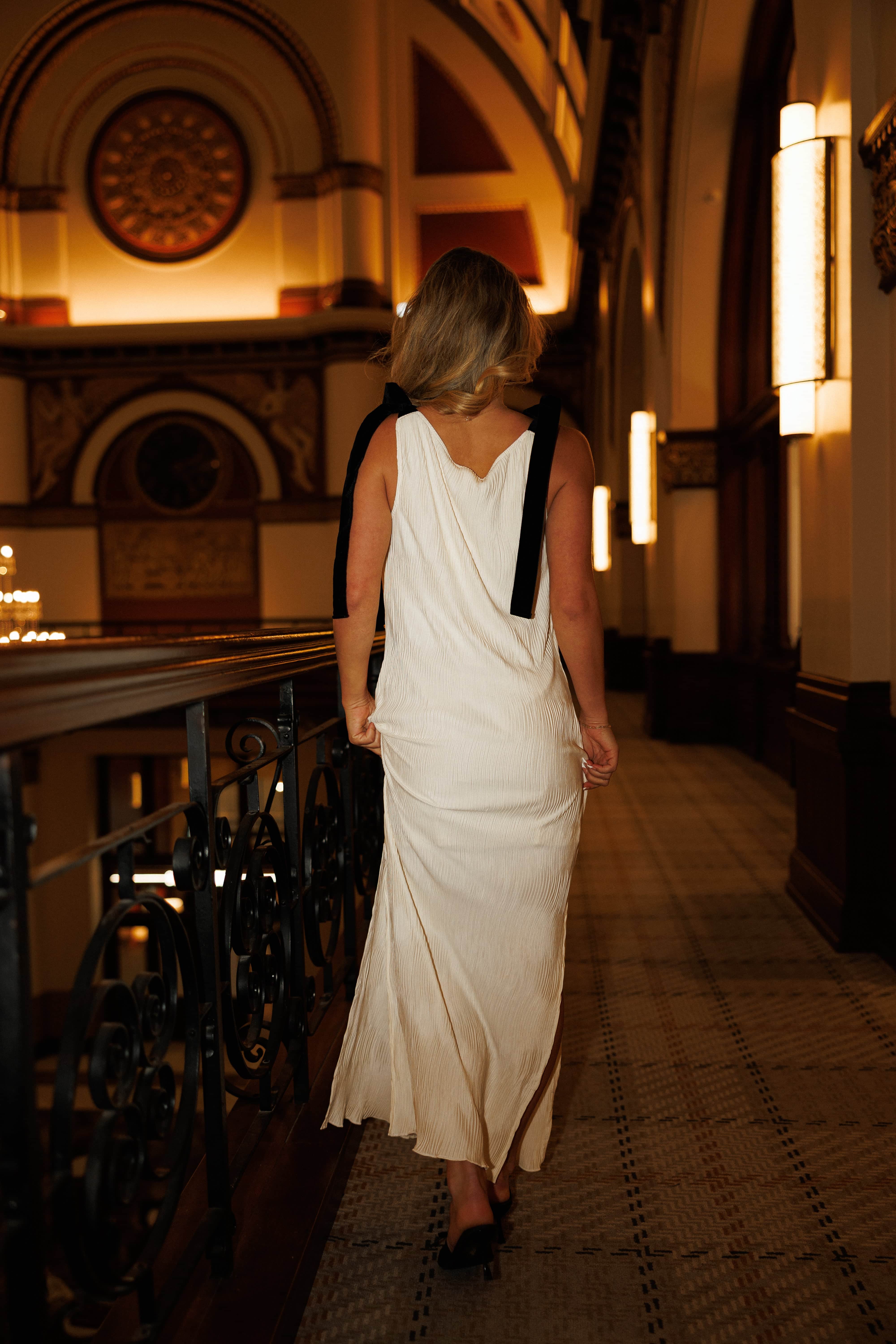 Celebrate in style with this elegant dress, thoughtfully designed to support your best look. Velvet ties at the shoulders adjust to fit you perfectly, adding a touch of luxury while ensuring comfort throughout your event. Dual side slits provide freedom of movement so you can dance, mingle, and enjoy every moment. The textured pattern creates visual richness that photographs beautifully and works wonderfully for holiday gatherings, special dinners, and festive occasions. You deserve a dress that makes you feel confident and radiant.