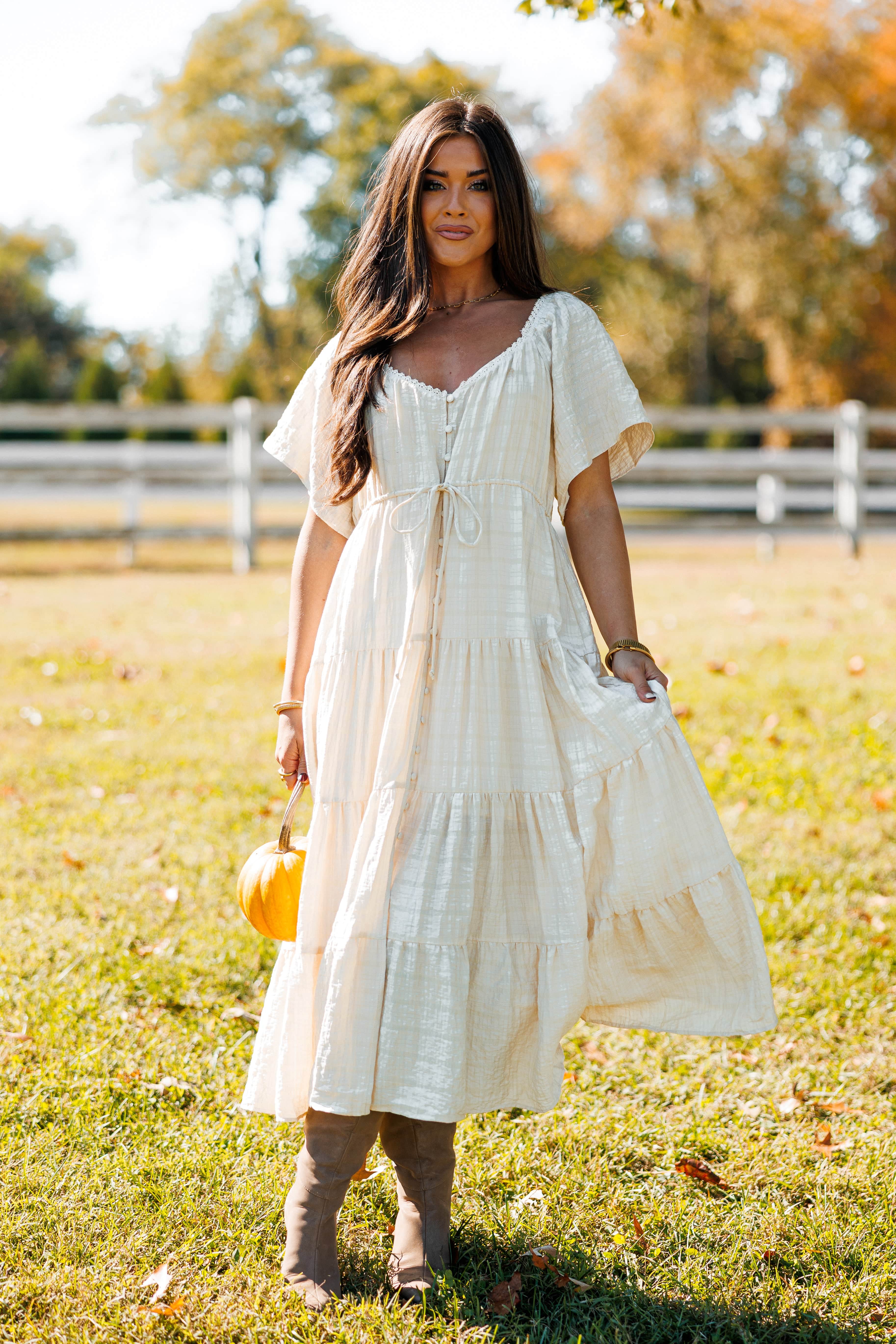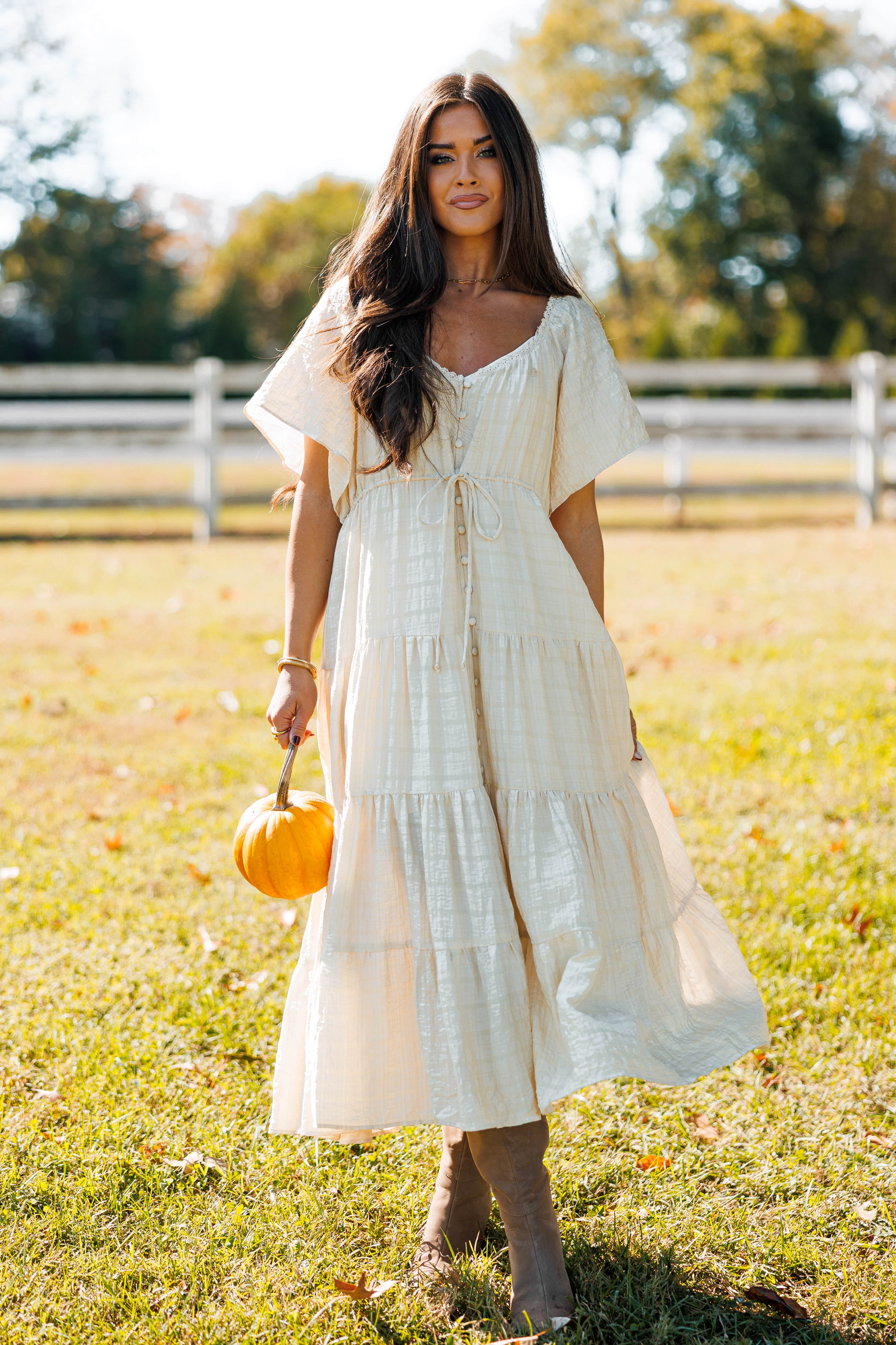 Embrace comfort without sacrificing style. This button-down tiered maxi dress features a premium woven fabric that drapes beautifully, supported by a lined construction that keeps you feeling secure throughout your day. The cascading tiers create movement and dimension, while the front button closure offers styling flexibility.