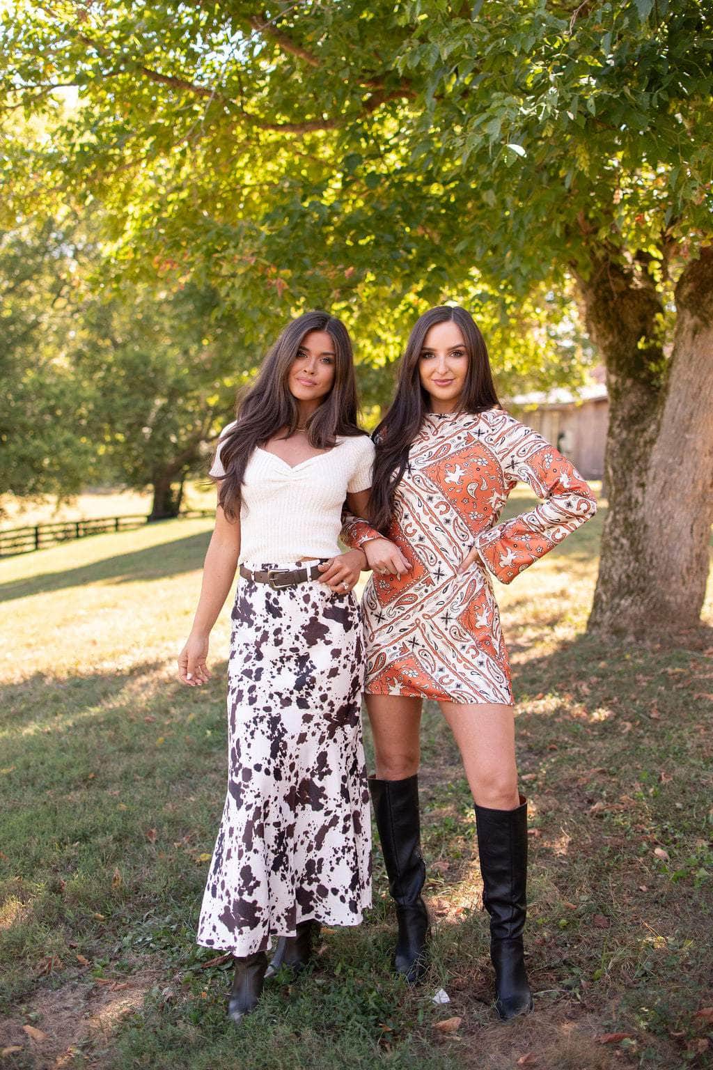 Turn heads in the Prairie Rose Paisley Mini Dress, featuring a high neckline and a playful open back with an adjustable tie for a custom fit. The hidden side zipper keeps the look sleek, while the mix of paisley and western prints adds a fun, unexpected twist. Perfect for stepping out with a bit of flair and confidence.