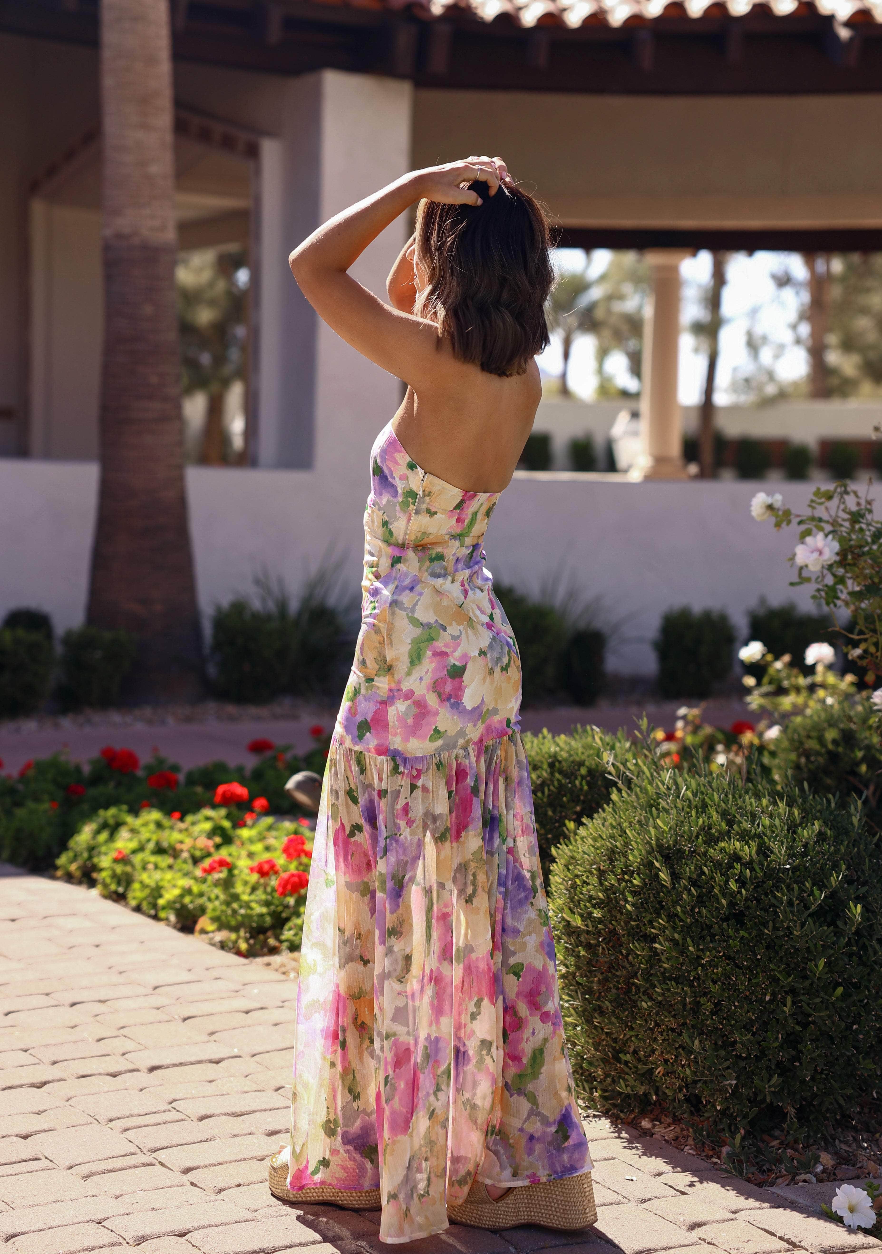 Get ready to turn heads with our Sunset Romance Dress. The rubber grip elastic ensures a secure fit while the lined top provides ultimate comfort. The long front/side slit adds a touch of flirty-ness, and the mermaid style flowing skirt creates a stunning silhouette. Perfect for any special occasion!